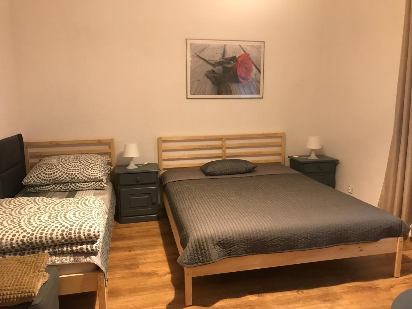 Pokój trzyosobowy. The triple room provides a private entrance and a wardrobe, as well as a private bathroom featuring a walk-in shower. This triple room features parquet floors, heating, a flat-screen TV and garden views. The unit offers 2 beds. Pokój Trzyosobowy - 3 osobowy. Powierzchnia pokoju ok.: 20 mkw. ;