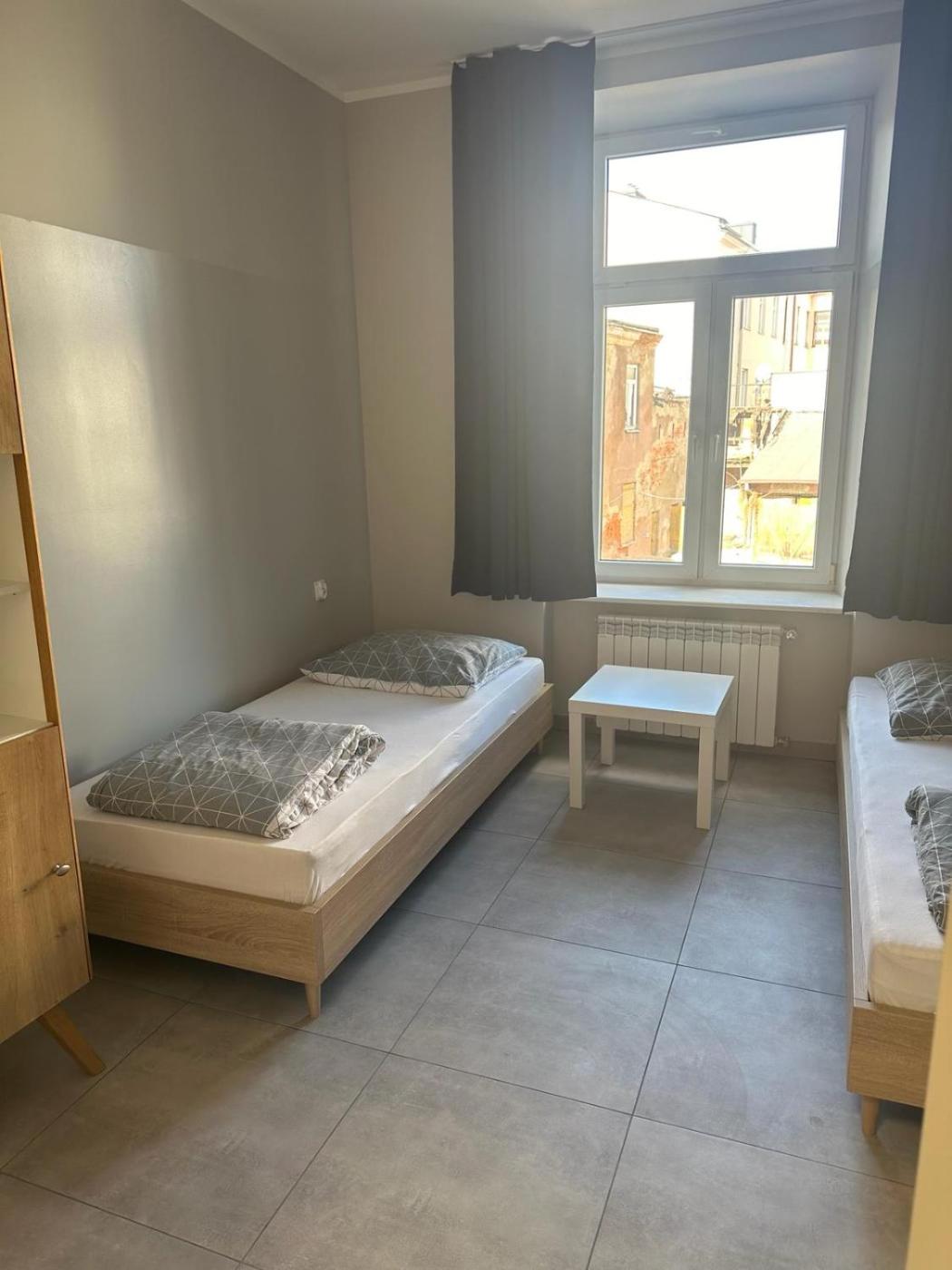Łóżko pojedyncze w pokoju wieloosobowym. The double room features a dining area and a wardrobe, as well as a private bathroom boasting a shower. The unit has 2 beds. Łóżko w pokoju wieloosobowym - 1 osobowy. Powierzchnia pokoju ok.: 15 mkw. ;